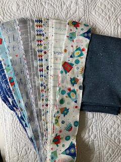 Pour reprendre un travail "vide tête" (oui... toujours en panne de création artistique!), une sélection de tissus pour un bébé à venir. Ma fille s’occupera du cheval de la future maman et moi, je ferai la couverture pour bébé... C'est terrible d'être dans un manège ou les filles pensent à la maternité : ce sera la 4ème couverture en 1 an et 9 mois!